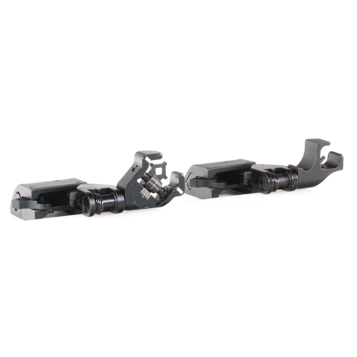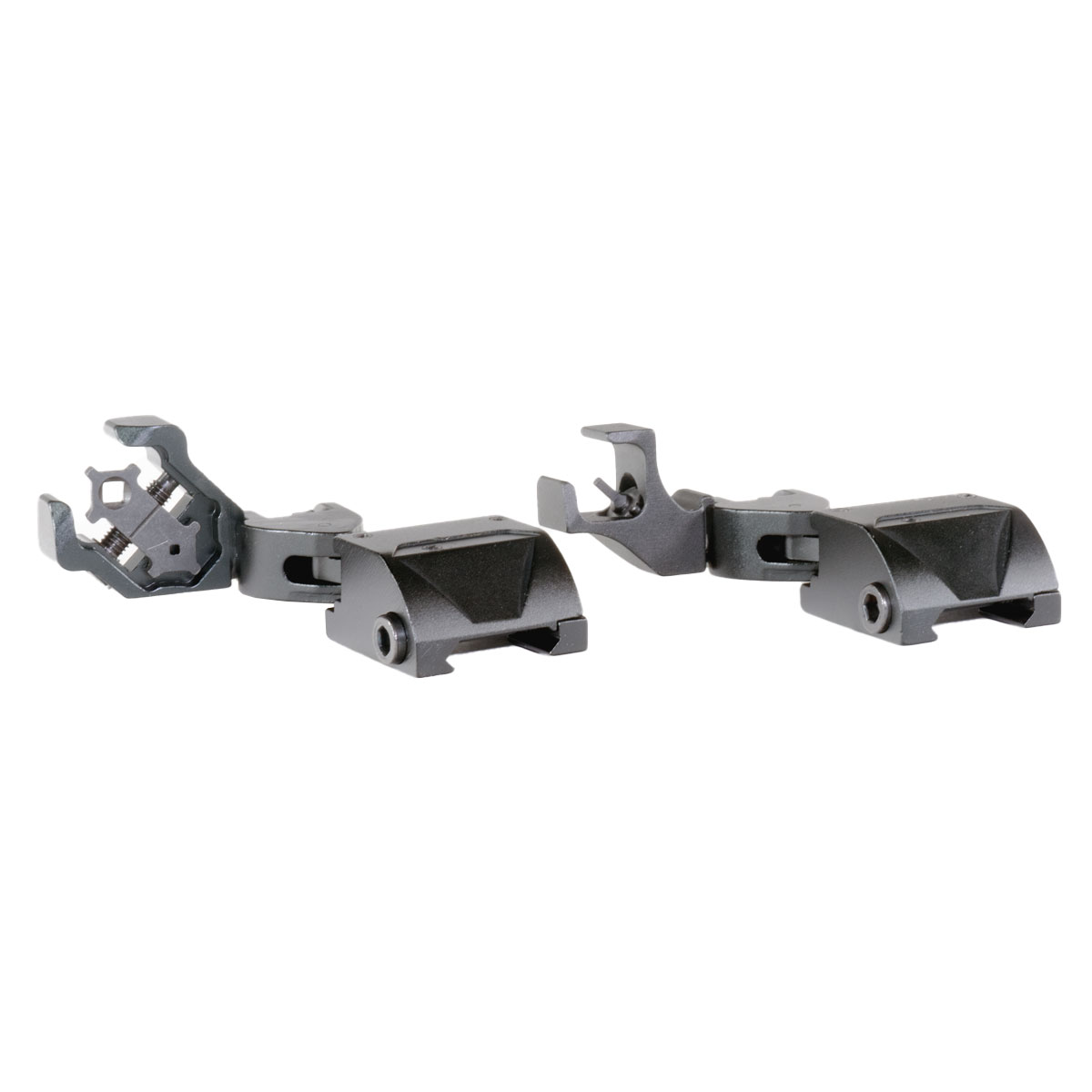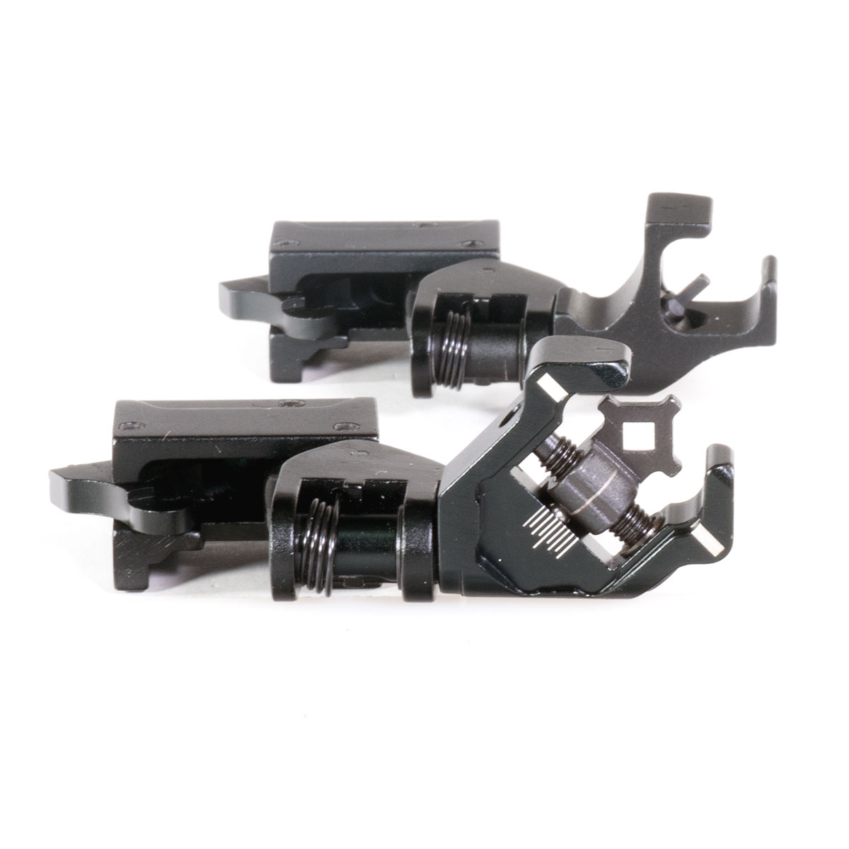 Rapid Deployment for High-Stress Situations: With a unique flip-out design you can go from a slim and streamlined build to having a secondary sight picture at a moment's notice. Utilizing a spring-loaded and innovative folding design, this sight set folds back into line with your firearm making sure to not have any odd angles or parts ticking out. Simply press a button and the sights will unfold to provide a 45-degree offset sight that will stay out of the way of your primary optics.