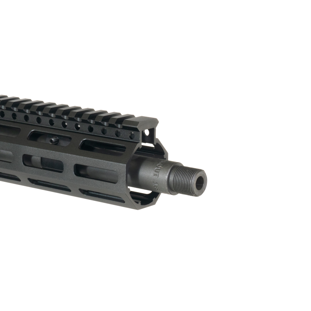 The upper receiver is crafted from 7075-T6 aluminum, a high-strength aerospace-grade alloy known for its exceptional durability and resistance to stress and fatigue. Anodized for enhanced longevity, the upper receiver provides superior corrosion resistance and wear protection while maintaining a professional appearance. The 7075-T6 construction offers a robust platform for .300 Blackout cartridges, ensuring tight tolerances and secure lockup with lower receivers. The freefloat M-Lok handguard is made from 6061-T6 aluminum and finished in black, providing a lightweight yet sturdy platform for accessories. The M-Lok system provides secure, repeatable mounting locations for lights, grips, and accessories, while the freefloat design eliminates contact with the barrel to preserve accuracy and improve heat dissipation.