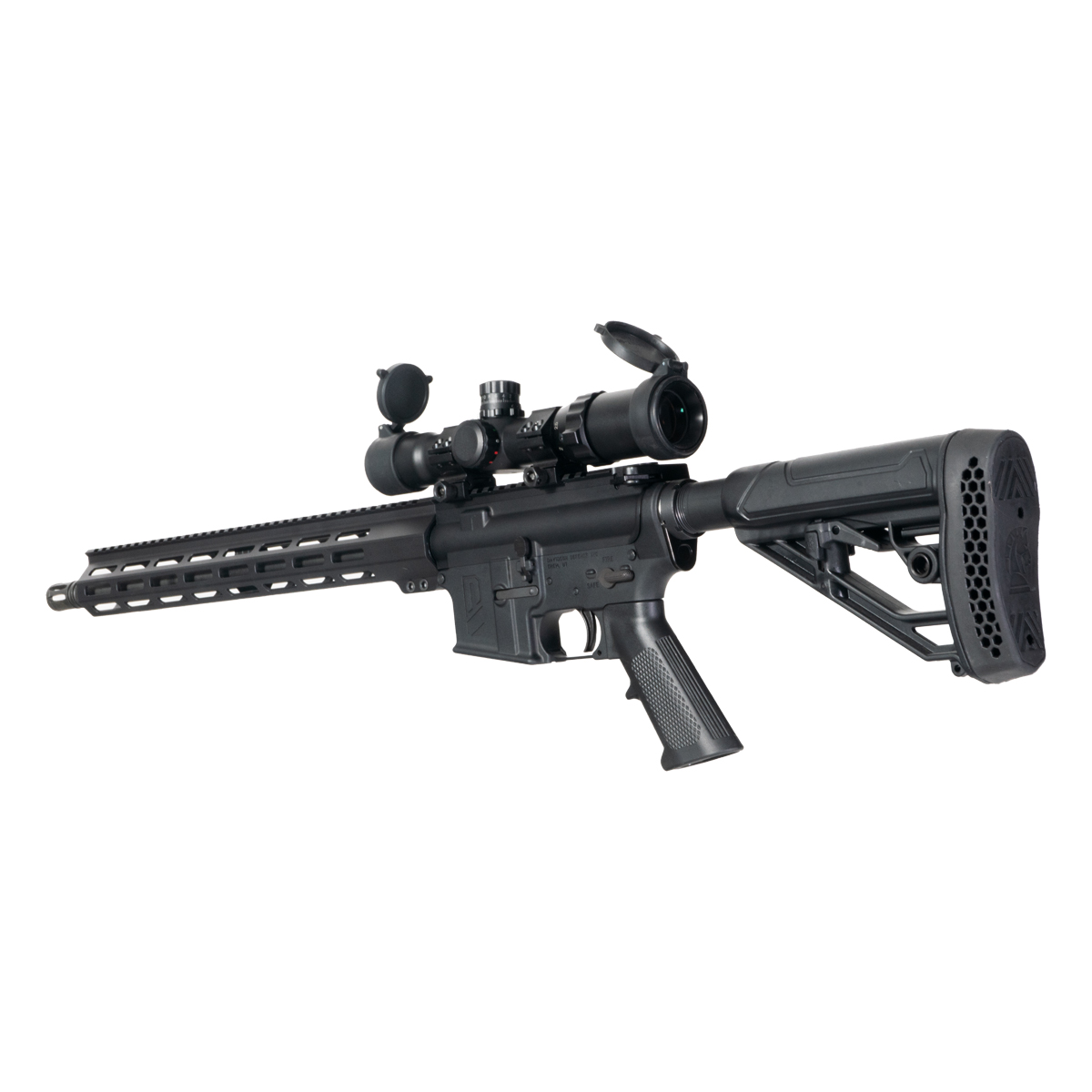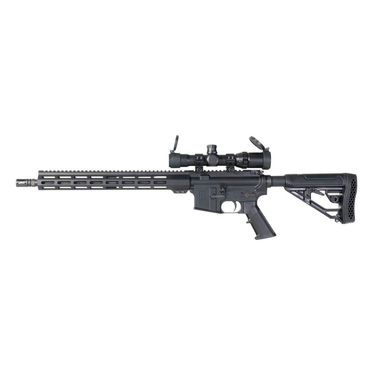 The Davidson Defense DD-15 delivers 350 Legend performance in a complete AR-15 platform with integrated optics. Featuring a 16 inch barrel chambered in 350 Legend, this carbine provides substantial stopping power with straight wall cartridge advantages for hunting regulations in restricted areas. A carbine length gas system ensures reliable cycling with 350 Legend pressure characteristics. The included Halcyon 1-4X illuminated LPVO offers variable magnification for close to medium range engagements with an etched horseshoe reticle that remains visible without battery power. Illumination enhances reticle visibility in low light conditions for fast target acquisition across varied environments. An Adaptive Tactical AR-15 EX Performance stock provides adjustable length of pull and solid cheek weld for consistent sight alignment through the optic. This configuration combines 350 Legend capability with ready to use optics for hunters and shooters seeking versatile performance in a complete package. Magazine not included.