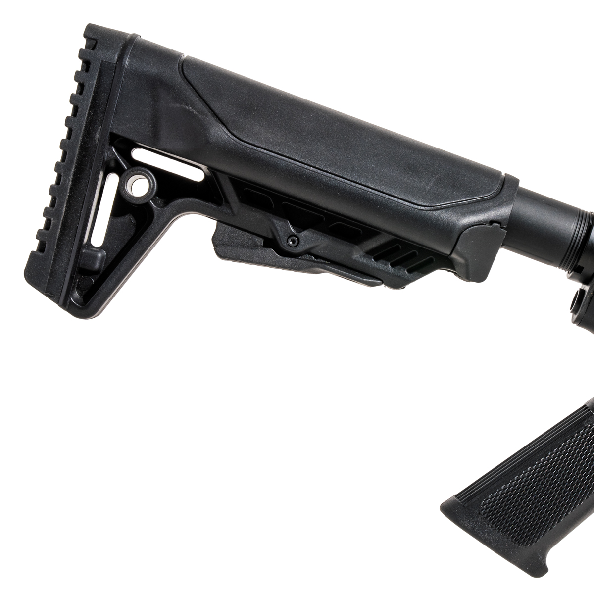 Included Is The Cobra Stock MK2 Which Features A Patented Locking System, Battery Storage Compartments And An Oversized Cheek Rest. The Cobra MK2 Is Easy To Install And Remove On The Any Mil-Spec Buffer Tube. The Butt-Pad Profile Is Angled To Accommodate Plate Carriers And The Aggressive Texturing Will Ensure Minimal Movement When Manipulating The Rifle Under Stress. Multiple Sling Points And Lightweight Snag-Free Construction The Cobra Fits Into Most Builds With Ease.