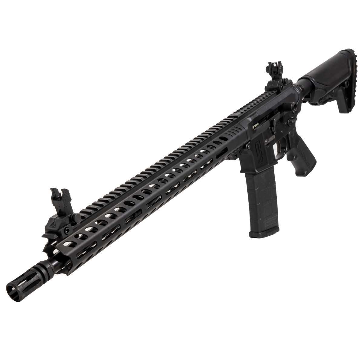 Chambered for 5.56x45 NATO, originally derived from .223 Remington, 5.56 NATO is the standardized and most popular cartridge developed for the AR-15 platform. Utilizing a .22 Caliber projectile, the low mass, high-velocity cartridge allows superior weapons handling with manageable recoil and high accuracy. With a wide variety of ammunition choices on the market, 5.56 NATO chambered AR-15s are 'multi-caliber' and can reliably fire both 5.56x45 NATO and .223 Remington cartridges.