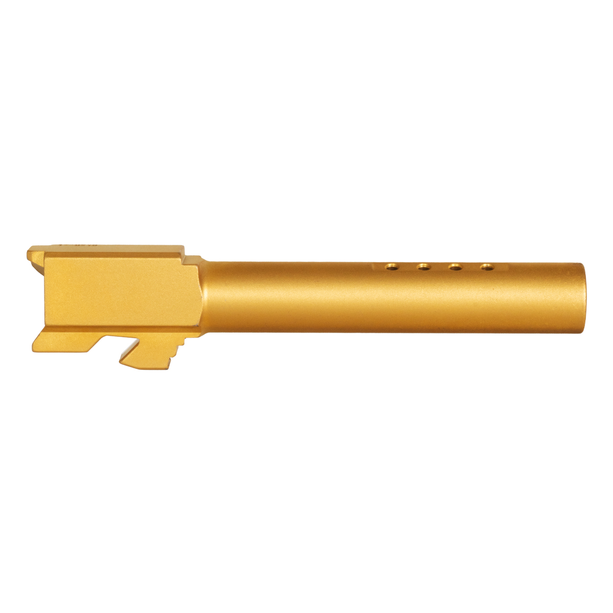 Constructed from high-quality steel, the barrel is coated with a durable gold titanium nitride finish, providing enhanced wear resistance and a striking appearance. The 1:10 twist rate further contributes to stabilization and accuracy of projectiles, ensuring reliable and consistent performance. This barrel is tailored for gunsmiths who value precision and reliability, making it an ideal upgrade for any Glock 17 enthusiast looking to improve their shooting experience. With its unique combination of features, the Davidson Defense barrel stands out in both functionality and aesthetics.