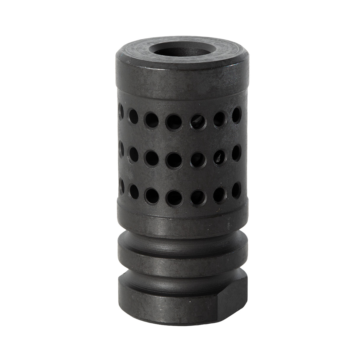 The KAK Industry Compensator features 5/8x24 thread pitch with manganese phosphate finish and strategically positioned ports for recoil reduction and muzzle rise control. This compensator provides compatibility with .308 Win, 7.62 NATO, .300 BLK, 7.62x39, .243 Win, 6.5 Grendel, 6.5 Creedmoor, 6mm ARC, and .350 Legend. Designed for AR-15 platforms with 5/8x24 threaded barrels. Lightweight profile construction. Not pin and weld ready.