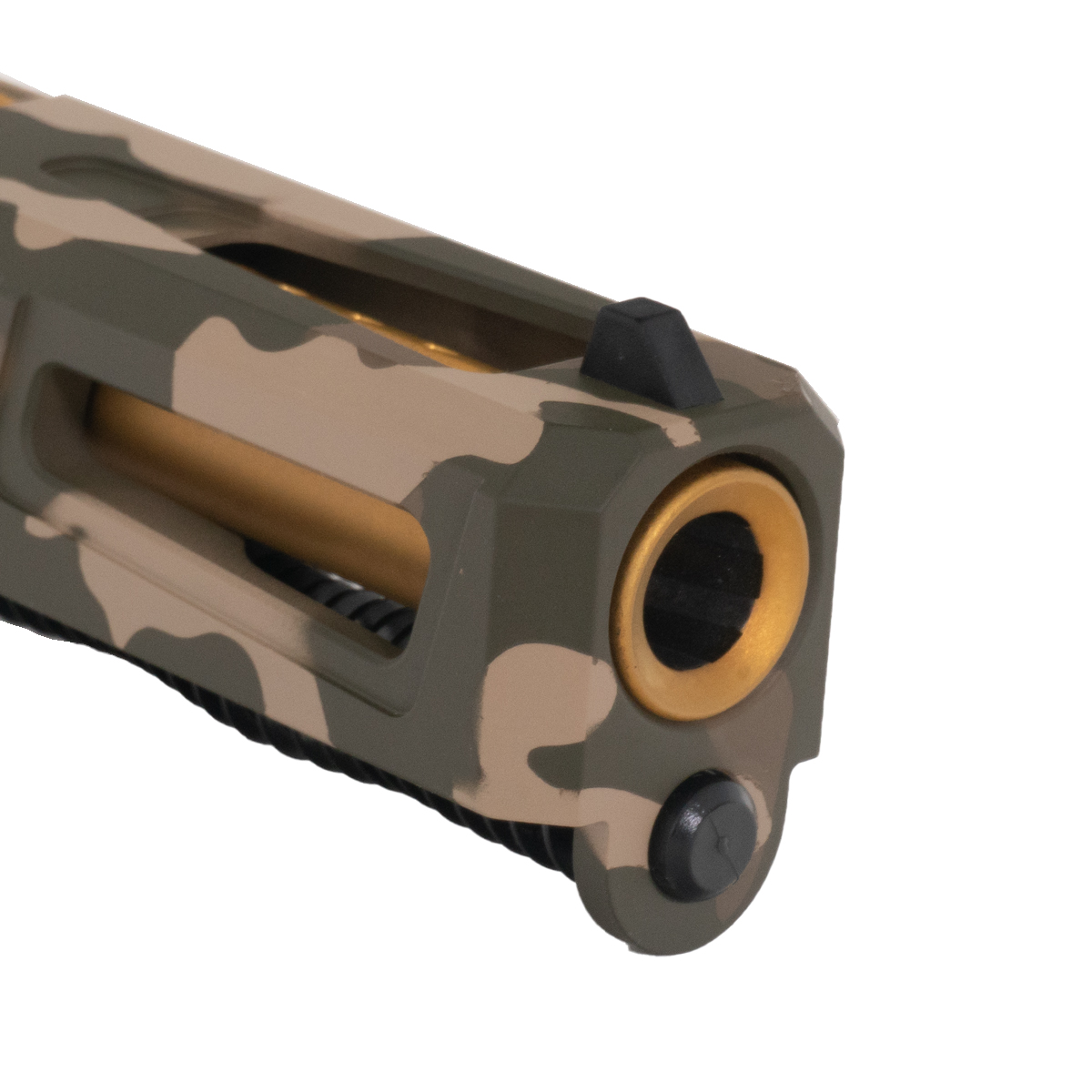 The slide is designed for G19 Gen 1-3 compatibility and includes an optics-ready RMR cut, allowing for the easy mounting of red dot sights. Finished in OD Camo Cerakote, this kit not only provides superior functionality but also a distinct appearance. All necessary slide parts are included, ensuring a complete assembly for those who value precision and reliability in their firearms. Perfect for gunsmiths and enthusiasts committed to performance and style.