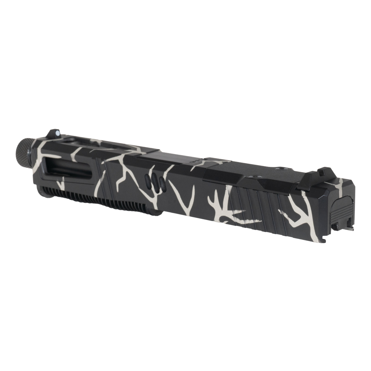 An RMR optic cut allows for the seamless integration of red dot sights, catering to modern shooting preferences. The slide is finished with a Stainless Lightning Cerakote that adds to both aesthetics and functionality. This complete slide kit provides gunsmiths with the components needed for a reliable, high-performance G19 platform, making it ideal for those who appreciate quality in their firearms.