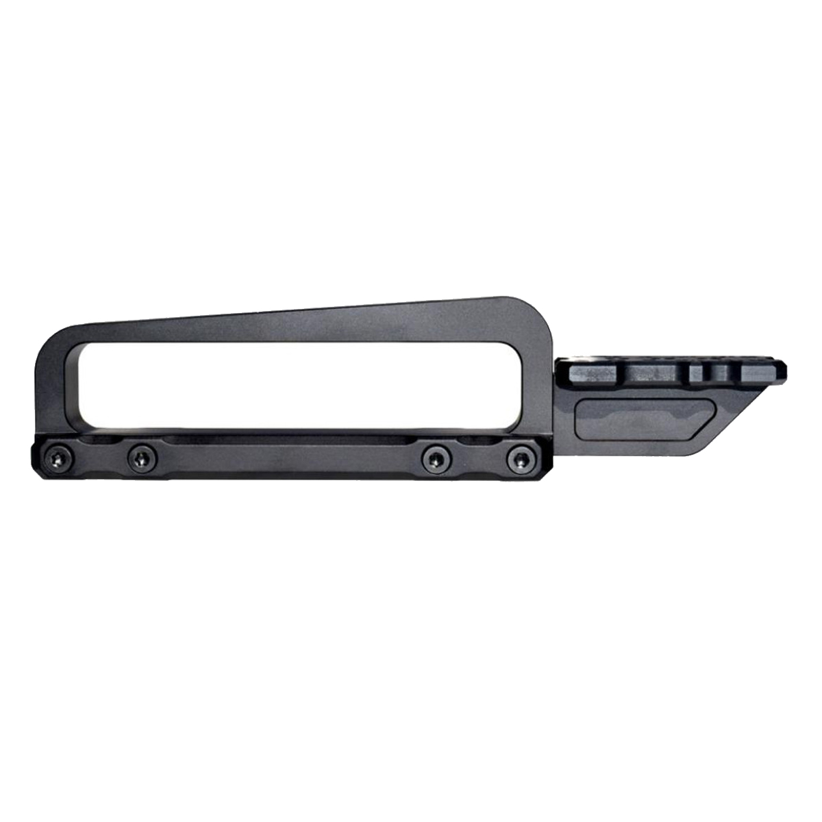The carry handle is made from A-6061-T6 aluminum and finished with hard-anodized aluminum for added resilience. Included with the carry handle are alignment pins and screws for secure attachment, along with a T10 Torx tool for installation. Weighing and designed for tactical applications, this carry handle adds a robust optic-ready mounting solution to AR-15 platforms, making it ideal for gunsmiths who value functionality and freedom in shooting applications.