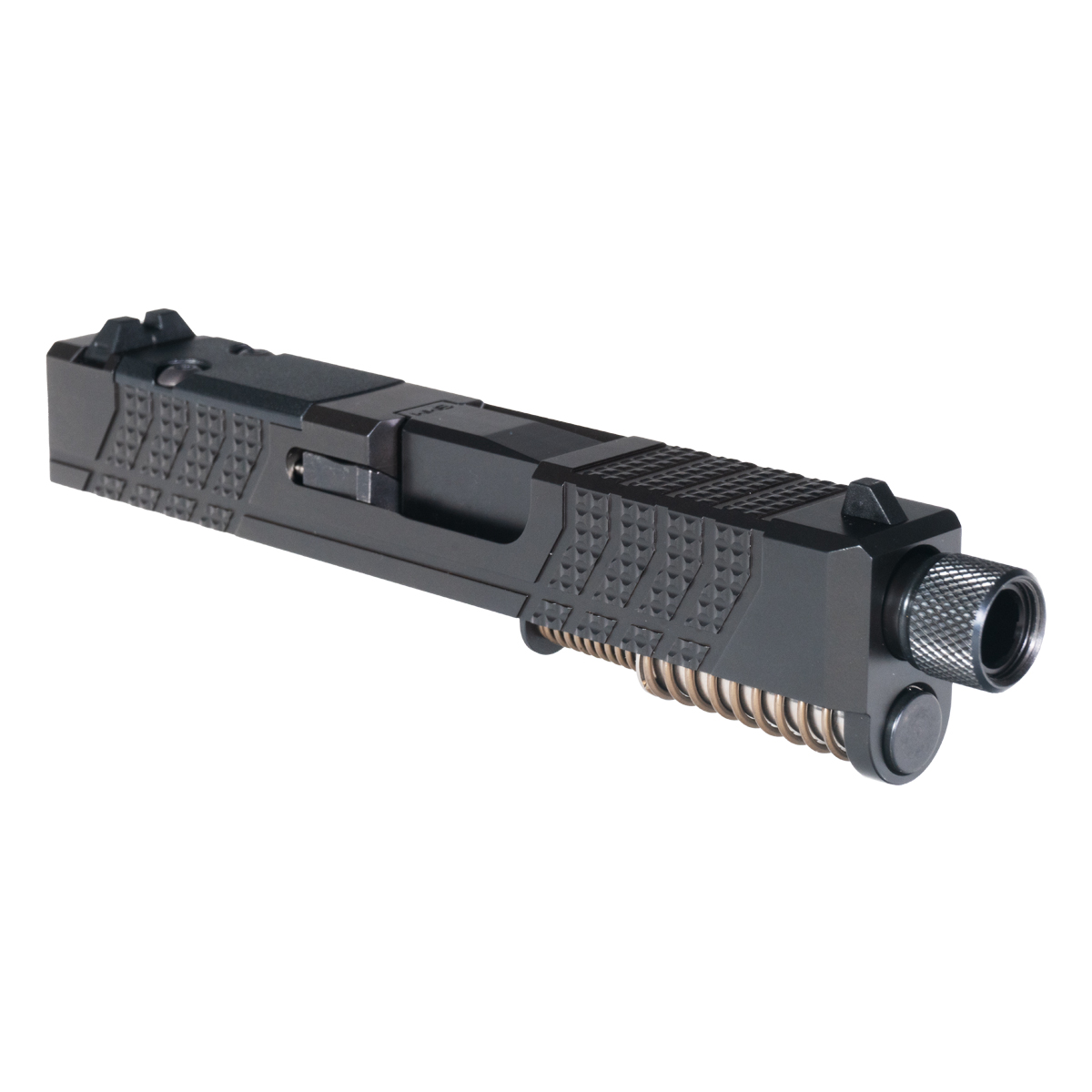 Low-Profile Sights for Quick Target Acquisition: Low-profile front and rear iron sights ensure quick target acquisition and co-witness capability with red dot optics, maintaining backup sighting solutions for tactical applications. The sight configuration provides reliable aiming reference for defensive shooting while maintaining the low profile necessary for smooth concealed carry draw strokes. The Davidson Defense Sentinel Complete Slide Kit is designed for gunsmiths and shooters seeking premium Glock 43/43X upgrades—combining high-grade nitride barrel, 416 stainless steel slide construction, RMS optics compatibility, threaded barrel capability, and low-profile sights in a complete package that delivers enhanced performance, modular accessory mounting, and professional black finish ideal for tactical enhancements and custom Glock configurations.