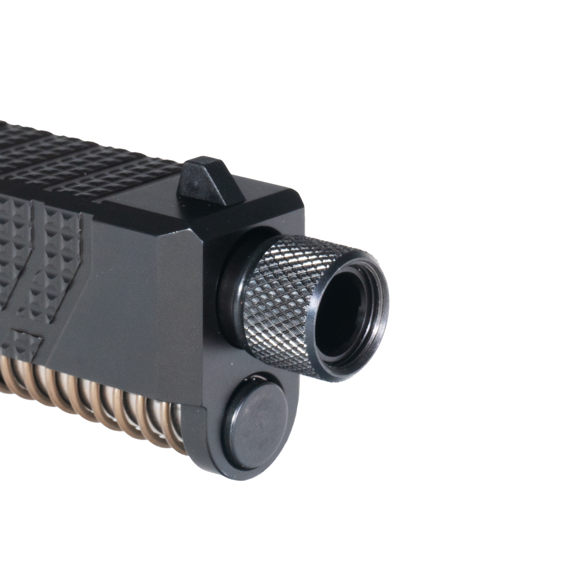 Premium Black Nitride Barrel Finish: The 9MM barrel features high-grade steel construction with black nitride finish, providing superior wear resistance and corrosion protection for reliable long-term performance. The nitride treatment penetrates the steel surface rather than coating it, delivering hardness superior to standard finishes while maintaining dimensional accuracy for consistent shot-to-shot precision. This finish protects against environmental exposure, holster wear, and cleaning solvents while maintaining the sleek black appearance that complements tactical setups.