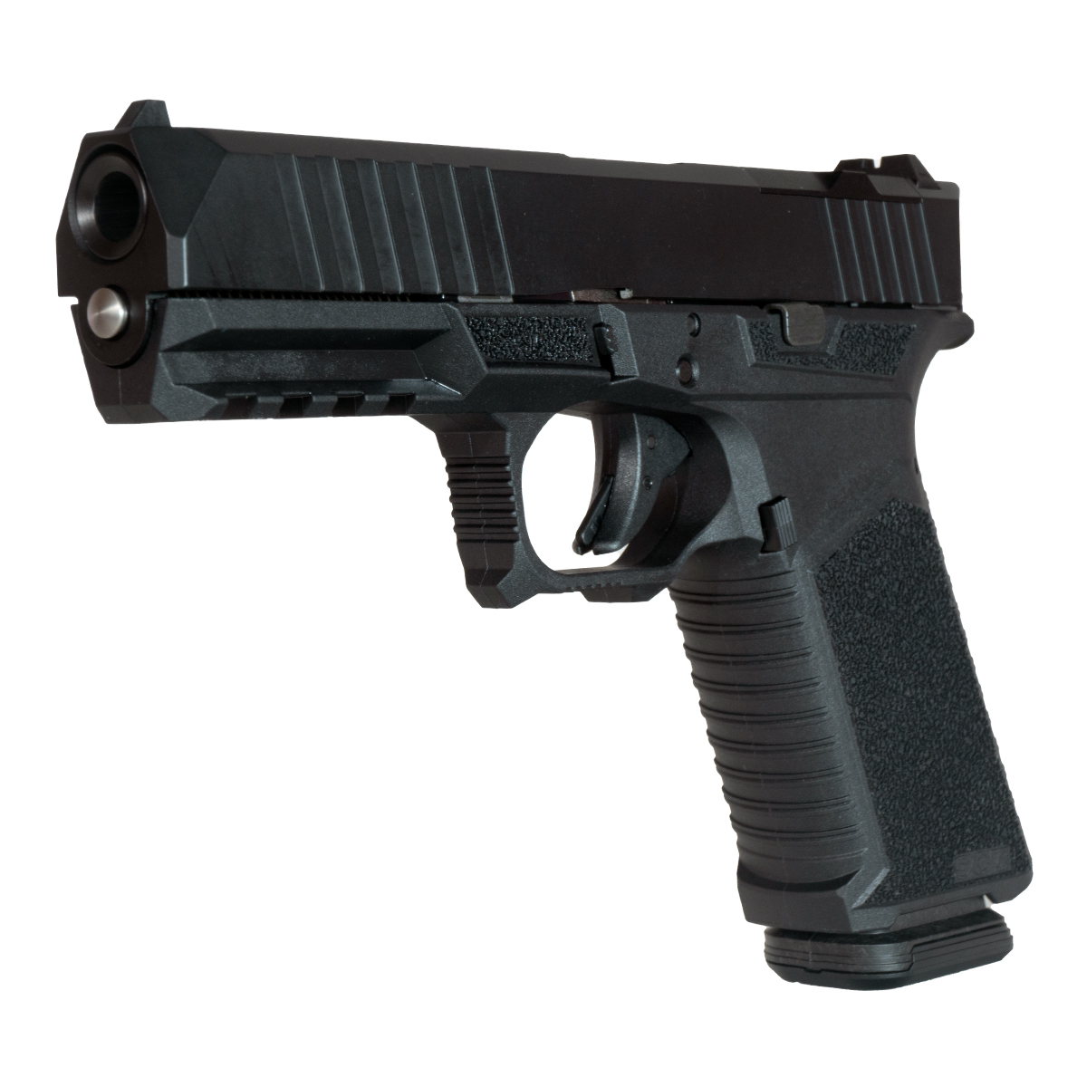 ?The slide is finished in Graphite Black Cerakote for a sleek appearance. The handgun is fitted with a Short Sight Assembly for precision aiming. The entire assembly includes a fully assembled SCT G17 compatible frame in black, creating a cohesive and functional package for gunsmiths who value performance and reliability in their tools.